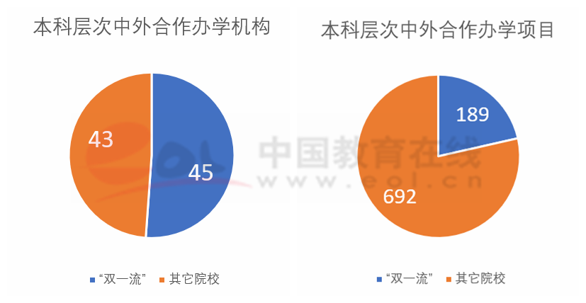 截至2019年底,本科層次的中外合作辦學機構88個,獨立法人辦學機構9所;中外合作辦學項目881個。
