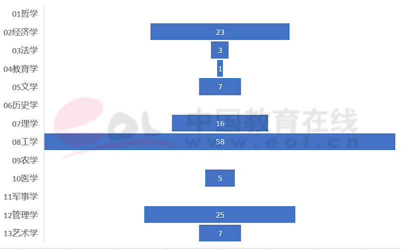 中外合作辦學旨在培養經濟社會發展急需的高素質國際化創造性人才,因此院校一般選擇優勢專業和社會急需專業開展合作辦學。以“雙一流”建設高校為例,開設學校數量最多的前5個學科【教育部13大學科門類包括:13個學科門類:即01哲學、02經濟學、03法學、04教育學、05文學、06歷史學、07理學、08工學、09農學、10醫學、11軍事學、12管理學、13藝術學。】分別是:工學、經濟學、管理學、理學、醫學,反映了我國當前經濟社會發展的時代特征。