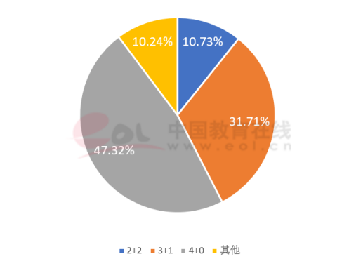 我國“雙一流”建設高校中外合作辦學項目的學制一般為4年,大概可以分為三種情況:2+2(國內2年,國外2年)、3+1(國內3年,國外1年)、4+0(國內4年,不出國)。其中,以“4+0”和“3+1”形式最多,占到80%左右。