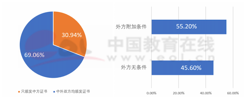 中外雙方均頒發證書項目數量,約占中外合作辦學項目總量的70%。