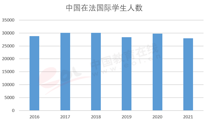 法國前十大國際學生生源國中,中國是唯一的亞洲國家,經常位居第二或第。2020年,中法續簽了文憑互認協議,該協議不再強制要求中國學生必須參加高考,僅需提供高中畢業證即可申請,赴法留學的門檻降低。近些年,中國在法國際學生人數基本保持穩定,在2.8-3萬人之間上下浮動。2017年和2018年最高,超過3萬人,2020年和2021年雖然受到疫情影響,但人數并未出現大幅下降,2020年甚至略有回升(見圖14)。
