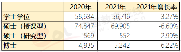 而在英國和澳大利亞學習的中國國際學生以授課型碩士和本科生為主,授課型碩士人數多于本科生(見表6)。2021年,在澳大利亞就讀博士的中國學生人數逆勢增長(見表6)。