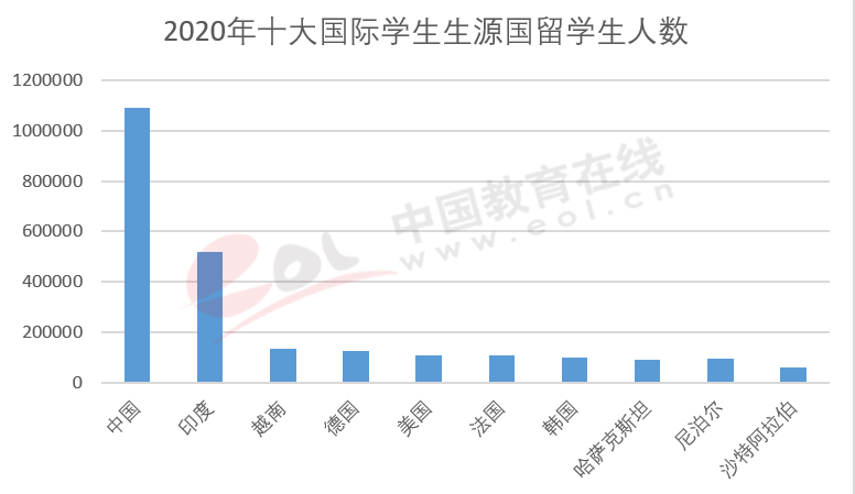 其中中國在海外留學的學生人數達108.8萬,是排名第二的印度的兩倍,穩居全球首位;印度排名第二,達51.6萬人;位居第的越南留學生人數達到13.3萬。