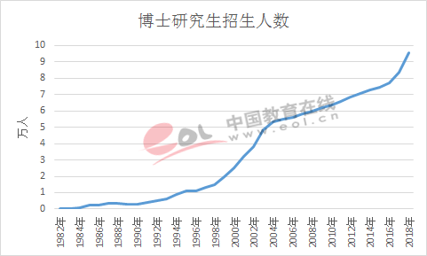 博士研究生招生在1998年至2003年之間增長迅速,年均增幅在25%左右。從2004年開始增幅有所趨緩,每年平均增幅在4%左右。