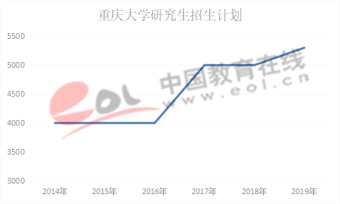 重慶大學在2017年招生數量大幅增加,達到5000人,比2016年增長1000人。2018年招生計劃持平,在2019年研究生招生計劃又增加了300人,達到5300人。