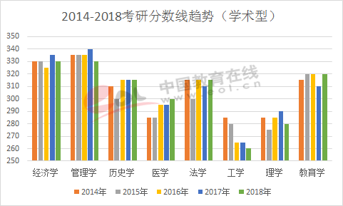 3.3.2 工學分數線持續下降 醫學、法學、管理類專業學位呈上漲趨勢