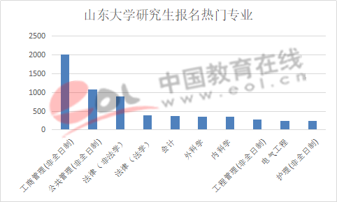 山東大學2018年研究生報名前十個熱門專業中,管理類占4個,醫學類占3個,法學占2個,工程類僅有1個。最熱門專業中工商管理報名人數2013人,錄取475人,報錄比4.2:1。唯一上榜的工程類專業電氣工程報名人數238人,錄取61人,報錄比為3.9:1。