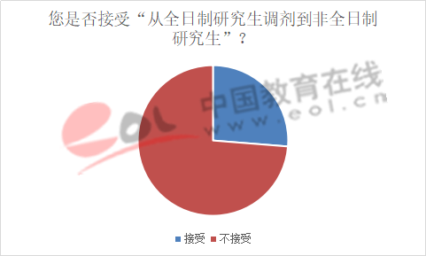 雖然大量高校的非全日制專業招生靠調劑來完成,但調查顯示,超過7成的考生并不愿意調劑到非全日制專業。