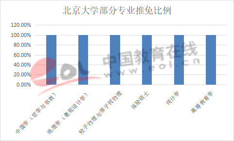 2019年北京大學中國學(哲學與宗教)、地理學(景觀設計學)、粒子物理與原子核物理、保險碩士、統計學、高等教育學等專業只招收推免生,推免比例達到100%。