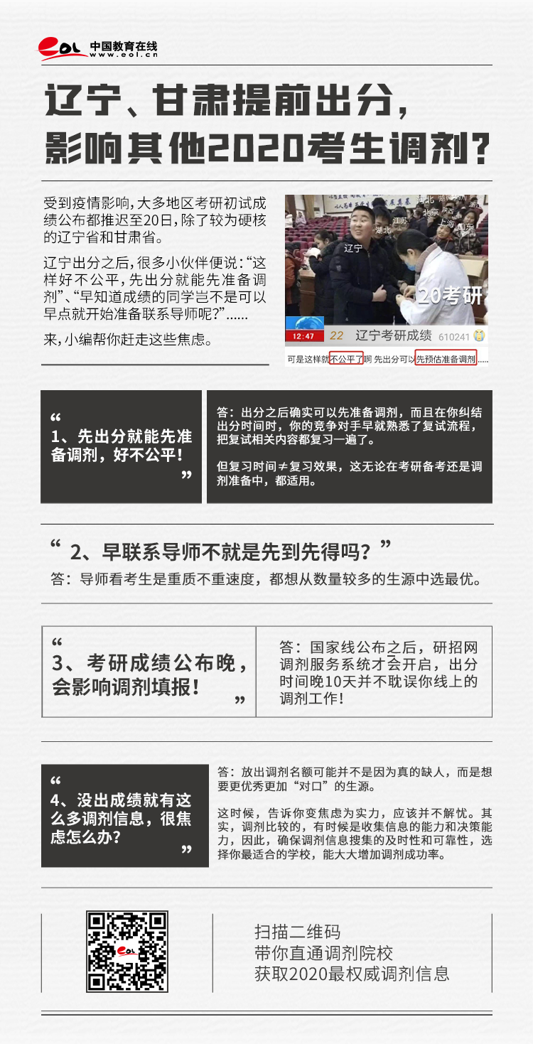 遼寧、甘肅提前出分,影響其他2020考生調劑?