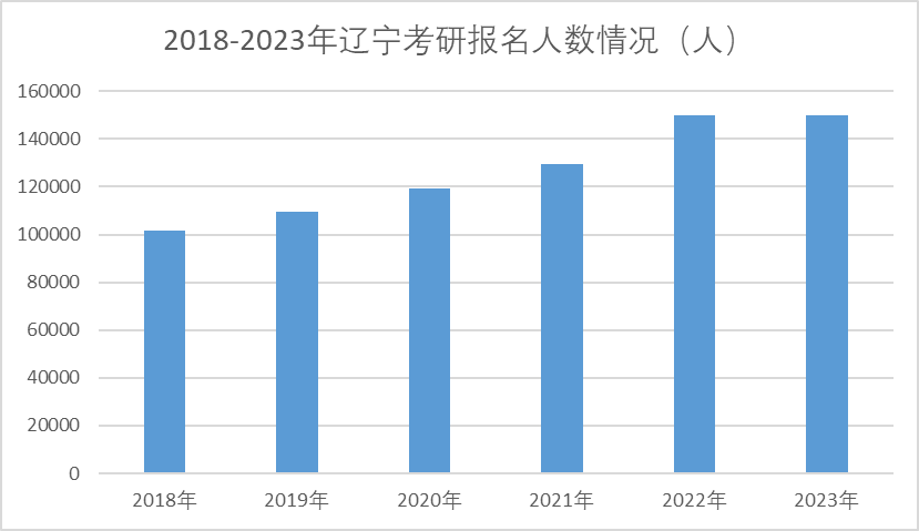 2018年遼寧省考研報名人數首次超過10萬人,其后四年,年均增幅10%左右,2022年考研報名人數突破15萬,達到了150033人。2023年遼寧考研報名人數接近15萬人,同比上年略有減少。