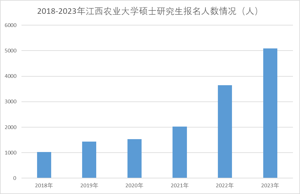 近幾年,江西農業大學碩士研究生報考人數增長迅猛,報考人數從2018年的1029人增長至2023年的5087人,年均增長近65%。