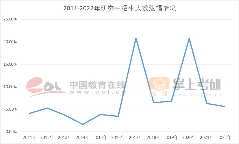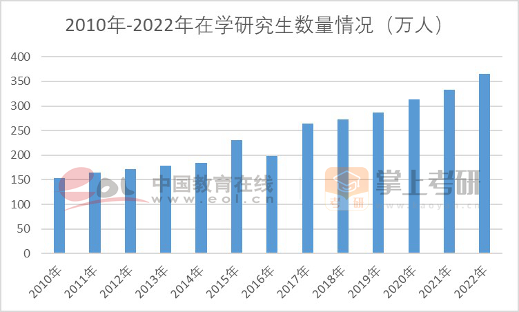 根據最新數據,2022年全國共有在學研究生365.36萬人,比上年增加32.12萬人,增長率為9.64%,相較去年,增幅有所放緩。