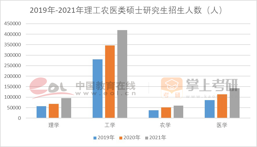 從近三年的情況看,理工農醫類專業碩士研究生招生總人數也均呈現持續增長態勢。