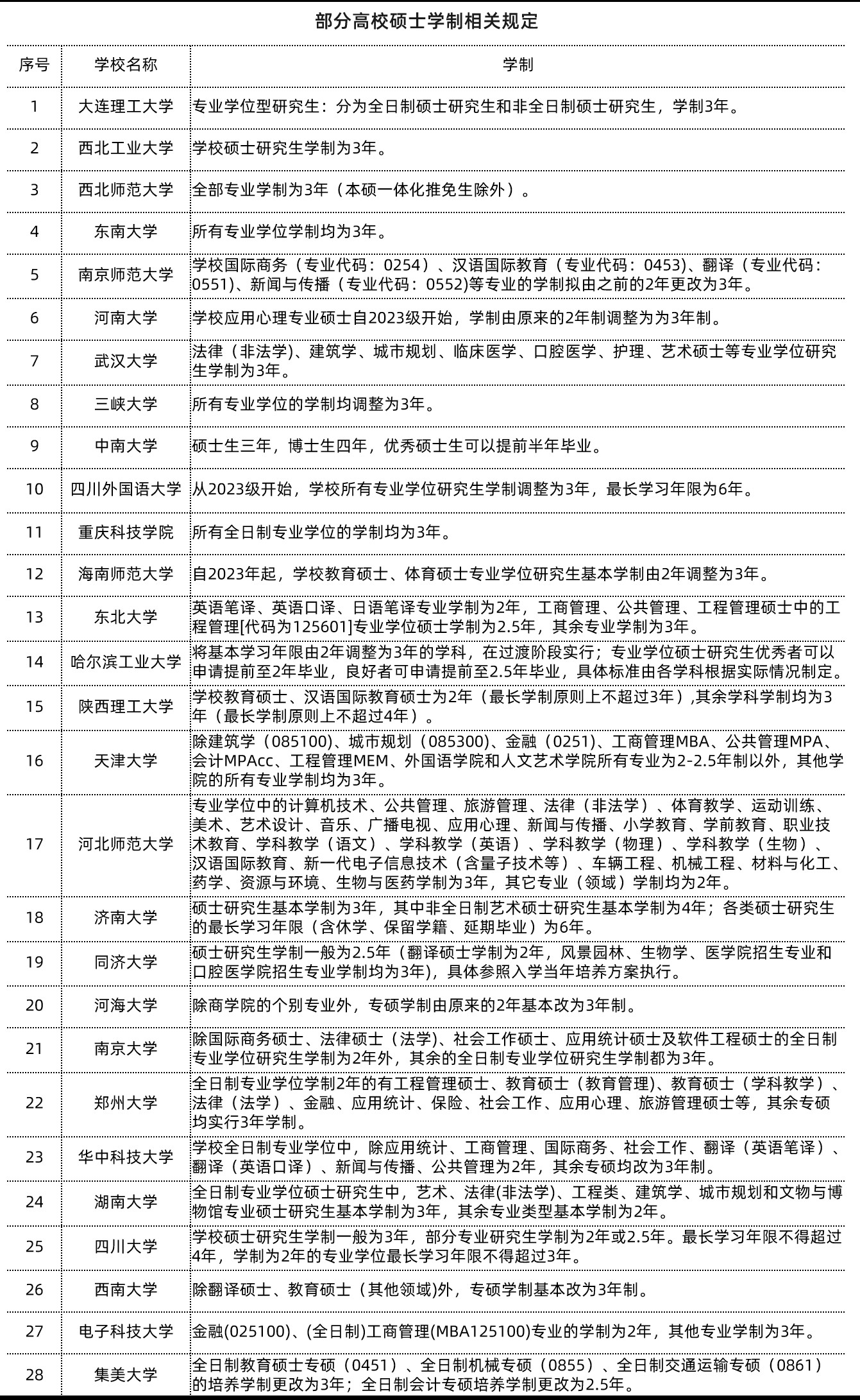 修業年限作為研究生教育的重要制度,更是關系到研究生培養的整體規劃。為提高培養質量,保障專業碩士有足夠的實習實踐與項目實踐經驗,高校普遍將專業碩士的學制從2年或2.5年延長至3年。