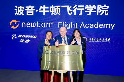 波音中國總裁謝利嘉女士表示,波音很榮幸能與清華附中和FIRST Scandinavia合作將創新的教育模式落地中國,為中國培養更多熱愛航空、科技的新生力量。“波音·牛頓飛行學院”是波音在華企業社會責任的創新實踐和延伸,希望鼓勵莘莘學子愛上飛行,加入航空領域,為未來的航空事業做出貢獻。