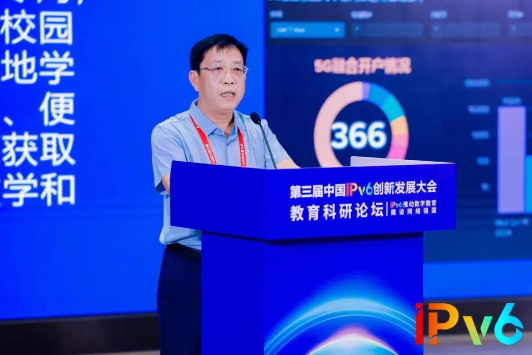 論壇上,任昌山作了《落實國家戰略 全面深化教育系統IPv6規模部署與應用》的特邀報告。他表示,教育部高度重視IPv6規模部署和應用工作,將IPv6等下一代互聯網技術與教育數字化戰略行動相結合,把推進IPv6規模部署和應用作為推進教育新型基礎設施建設的重要組成部分予以重點推進,將要全面深化教育系統IPv6規模部署和應用。