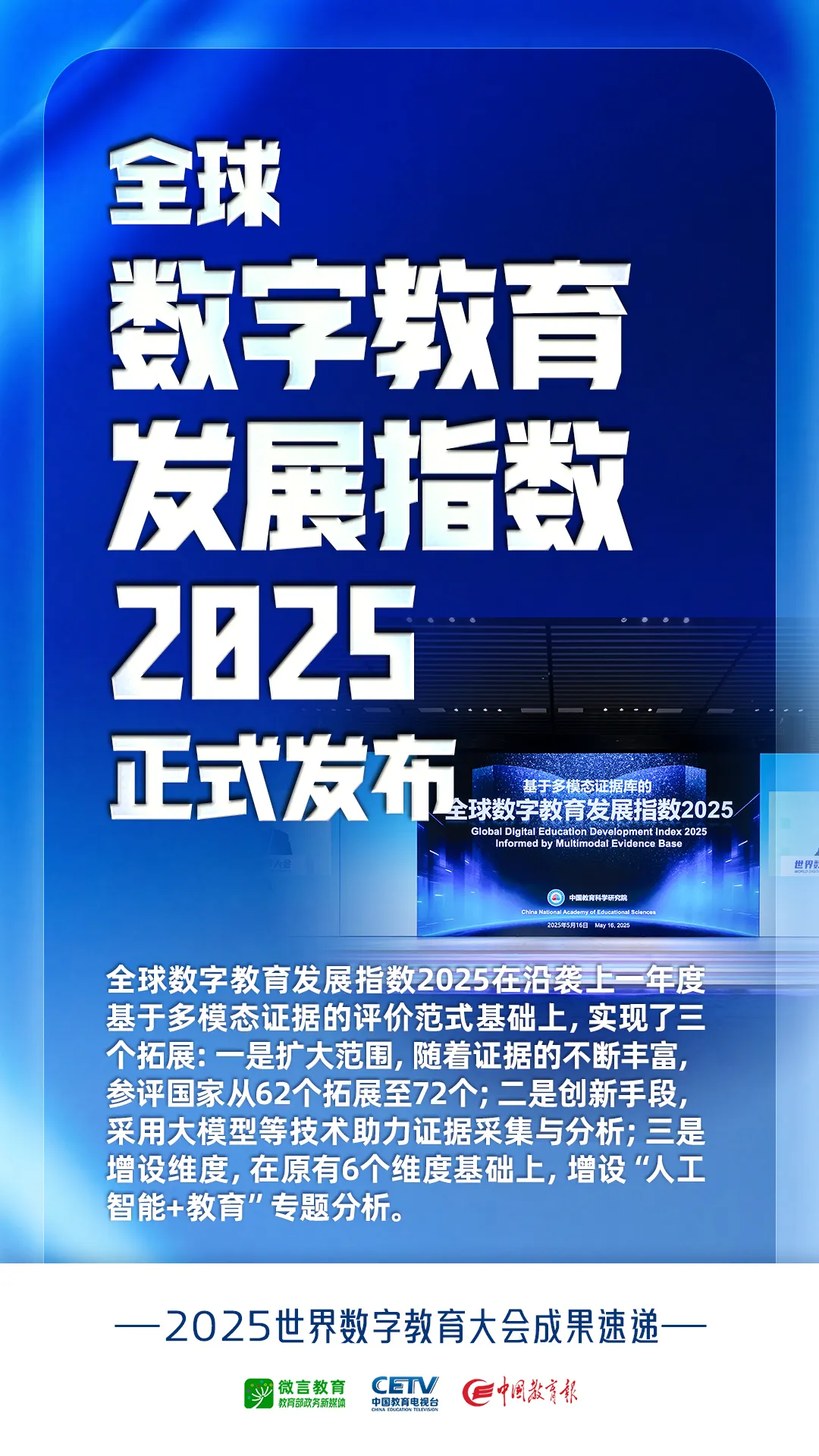 5月16日,在2025世界數字教育大會閉幕式上,中國教育科學研究院正式發布全球數字教育發展指數2025。