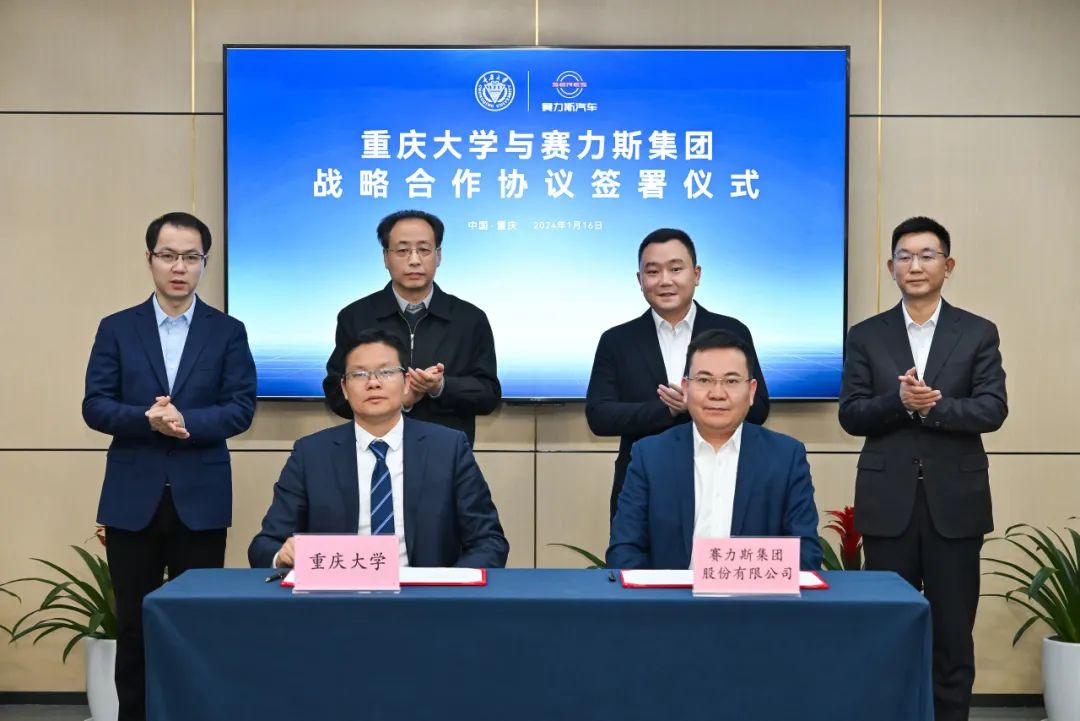 1月16日,重慶大學與賽力斯集團在重慶簽署戰略合作協議。重慶大學校長、中國工程院院士王樹新,重慶大學副校長李劍,賽力斯集團輪值總裁張正萍,賽力斯汽車 AITO 問界BU 總裁何利揚等出席并見證簽約儀式。重慶大學科發院院長曹華軍、賽力斯汽車戰略規劃部總監張有洪分別代表雙方簽署戰略合作協議。