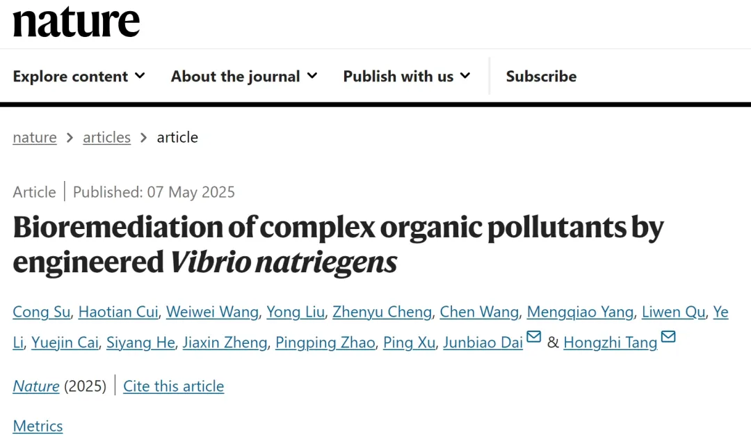 近日,上海交通大學生命科學技術學院、微生物代謝全國重點實驗室唐鴻志團隊與中國科學院深圳先進技術研究院/中國農業科學院深圳農業基因組研究所(嶺南現代農業科學與技術廣東省實驗室深圳分中心)戴俊彪團隊合作,在環境微生物技術研究方面取得進展,用合成生物學方法構建的需鈉弧菌工程菌株能在高鹽工業廢水和高鹽土壤中同時降解多種有機污染物。該項研究為解決石化廢水排污、海洋石油泄漏等全球性環境問題提供了全新的技術方案。相關研究成果以“Bioremediation of complex organic pollutants by engineered Vibrio natriegens”為題,于2025年5月7日在線發表在《自然》(Nature)上。