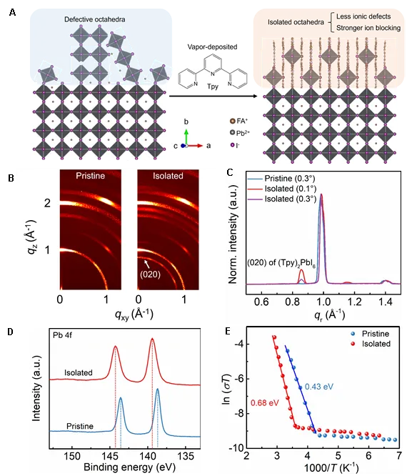 針對上述問題,團隊開發出更綠色、更具經濟性的“氣相輔助表面重構”技術,相較于前代氣相氟化技術,新方法無需專用設備,僅通過氣相沉積多齒配體即可實現鈣鈦礦表面結構的原位重構,隔離缺陷富集的表面單元,實現離子不可逆遷移的抑制。這項創新技術不僅闡明了不可逆離子遷移是導致器件性能永久衰退的本質原因,更通過抑制該過程首次在鈣鈦礦電池上實現了與硅太陽能電池比肩的戶外穩定性,同時工藝成本較前代技術大幅下降,且完全兼容現有光伏產線設備體系,為鈣鈦礦光伏技術的規模化應用掃清了關鍵障礙,標志著該領域從實驗室創新向產業化落地邁出了里程碑式的一步。