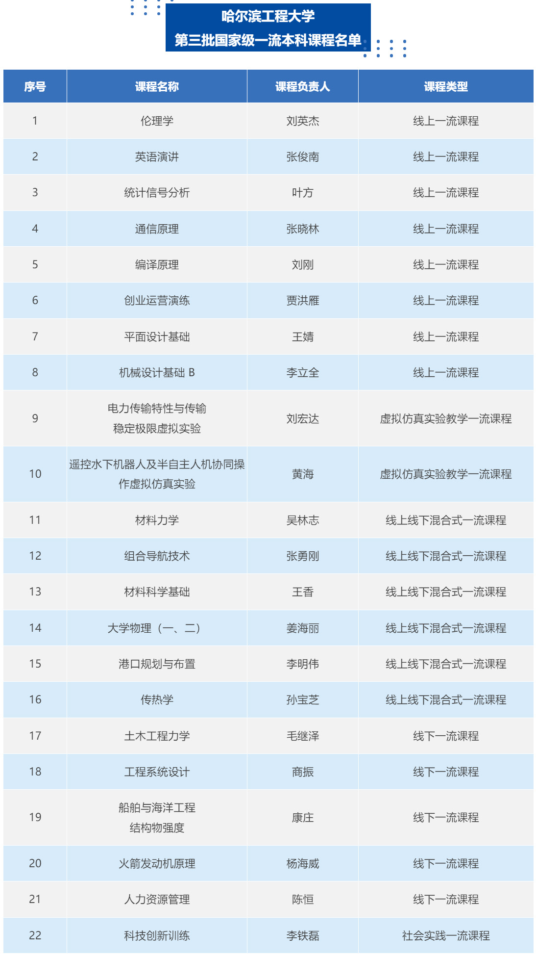 哈爾濱工程大學22門課程入選第三批國家級一流本科課程!