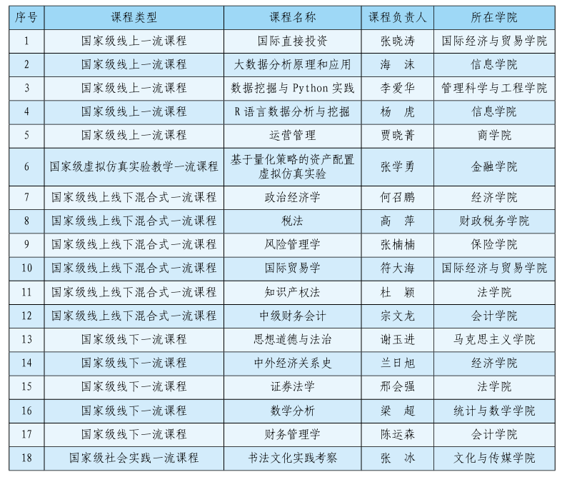 中央財經大學18門課程入選第三批國家級一流本科課程