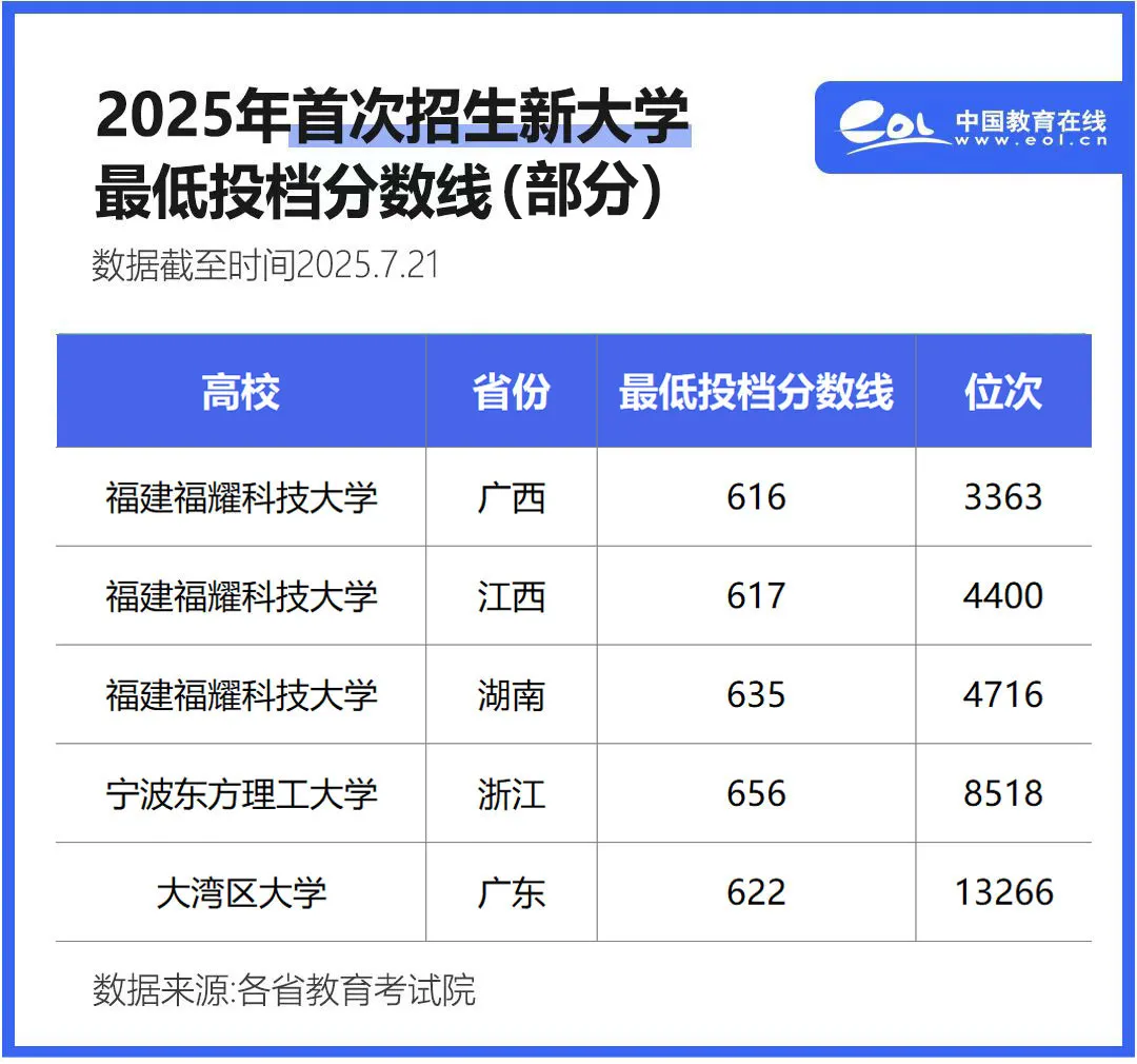 其中,福建福耀科技大學、寧波東方理工大學、大灣區大學這3所今年首次招生的新大學,憑借比肩甚至超越多所985高校的超高投檔線,引發了廣泛關注與熱議。