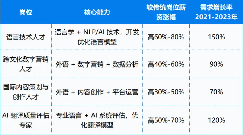 概括來看,以下四類代表性“外語+”復合型人才需求上升,且短期內難以被完全替代: