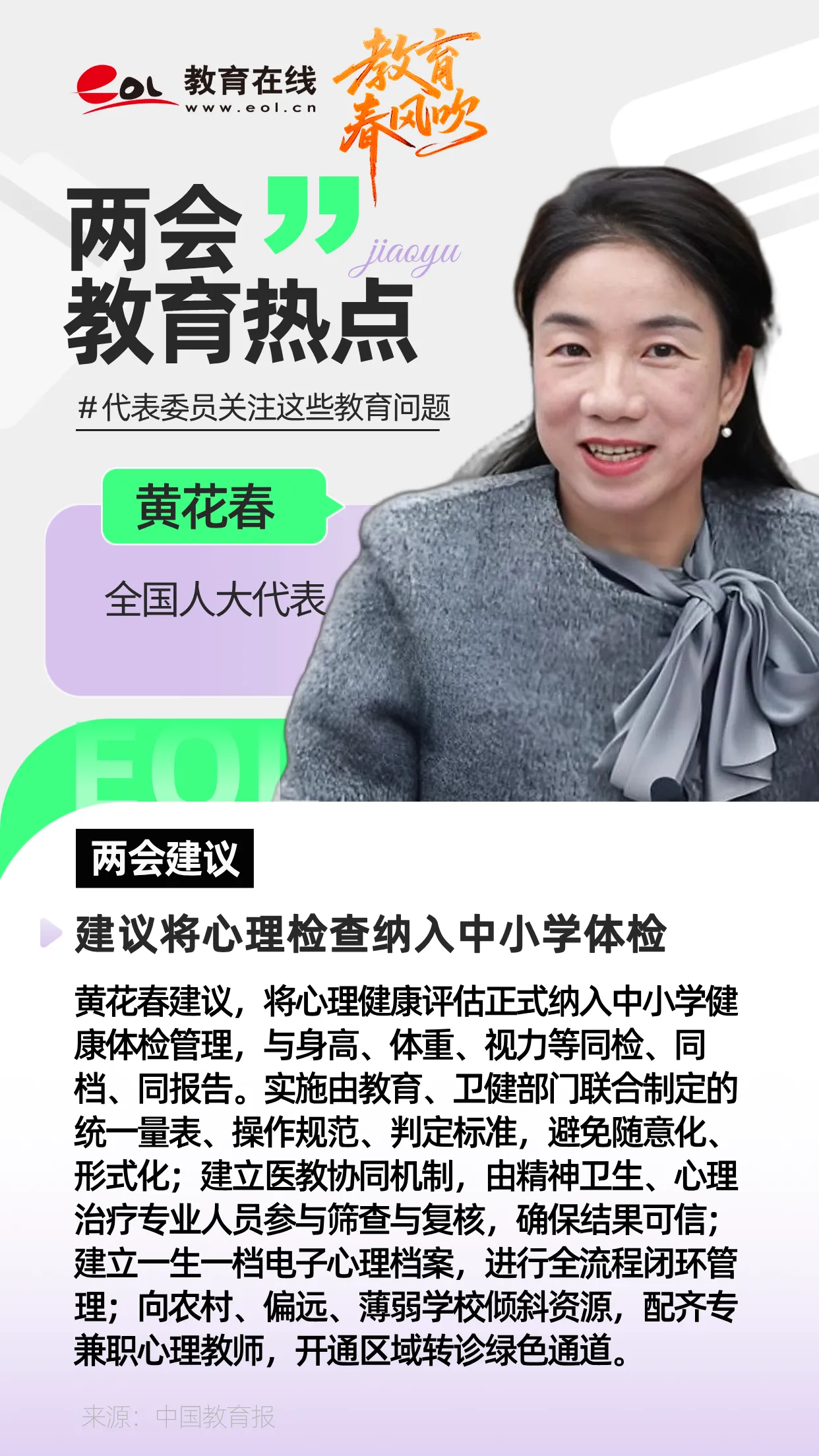 黃花春:建議將心理檢查納入中小學體檢