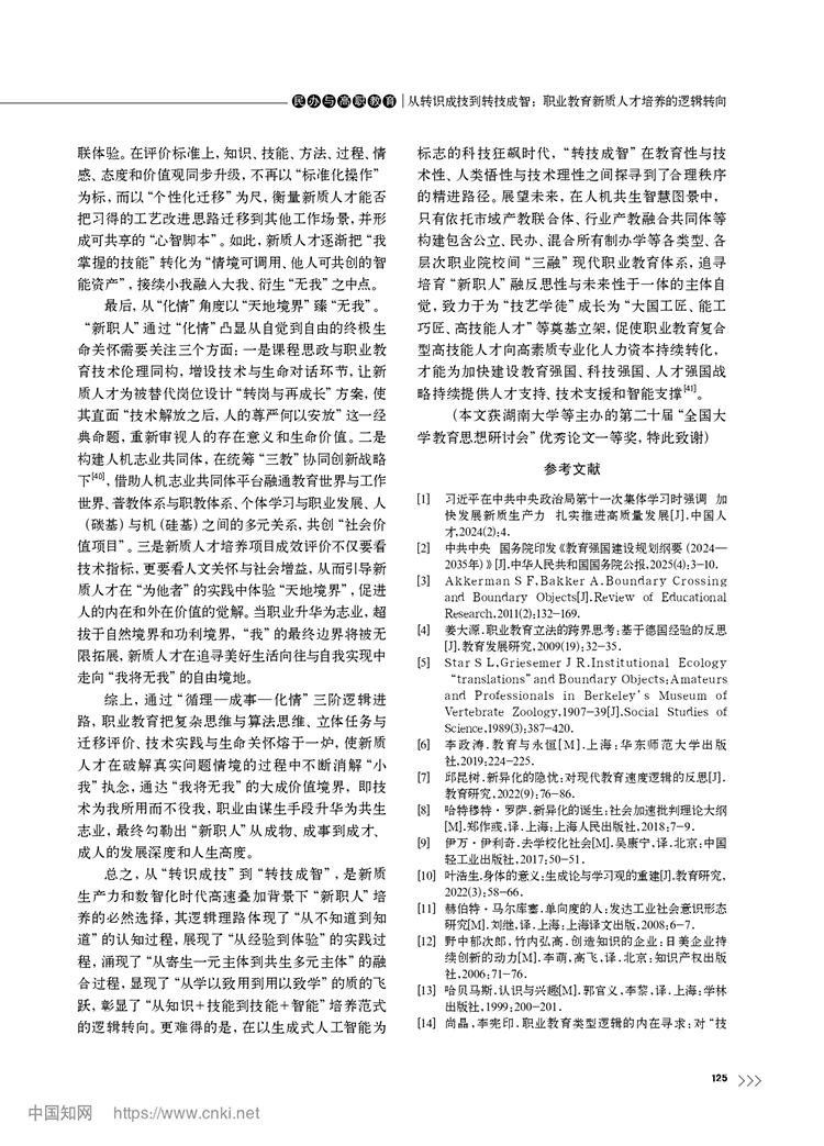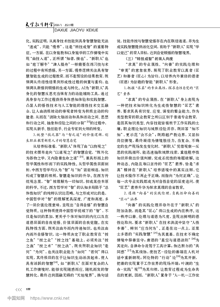 尚晶 馮用軍|從轉識成技到轉技成智:職業教育新質人才培養的邏輯轉向