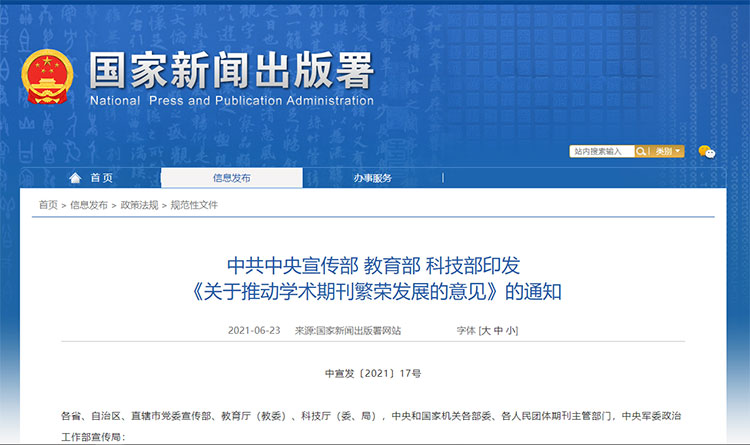 近日,中宣部、教育部、科技部近日聯合印發《關于推動學術期刊繁榮發展的意見》。《意見》明確:學術期刊水平、影響力要明顯提升,努力打造一批世界一流、代表國家學術水平的知名期刊;提高學術成果在我國期刊首發的比例,杜絕“關系稿”“人情稿”,堅決抵制和糾正學術不端行為;本科生、研究生申請學位和畢業考核不與在學術期刊上發表論文情況簡單掛鉤等推動學術期刊繁榮發展;原則上不再新批多學科綜合性學報等,共14點意見。意見全文如下: