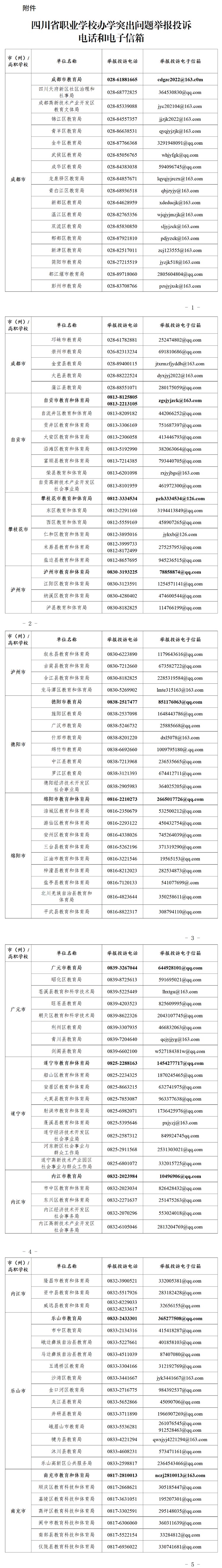 附件:四川省職業學校辦學突出問題舉報投訴電話和電子信箱