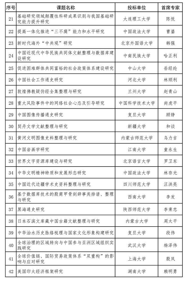 教育部公示2022年度哲學社會科學研究重大課題攻關項目評審結果