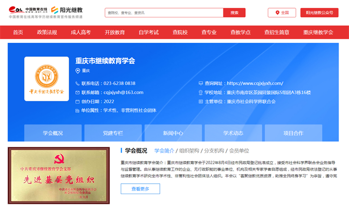 重慶市繼續教育學會則是由重慶市民政局登記批準成立,接受市社會科學界聯合會業務指導與監督管理的省部 級一級學會,學會以“薈聚繼教優質資源,助推全民終身學習”為宗旨,以創新發展為動力,以高效服務為驅動,薈聚整合繼續教育優質資源,做交互式鏈接平臺,促進全民終身學習,提升人才素質,助力行業發展。