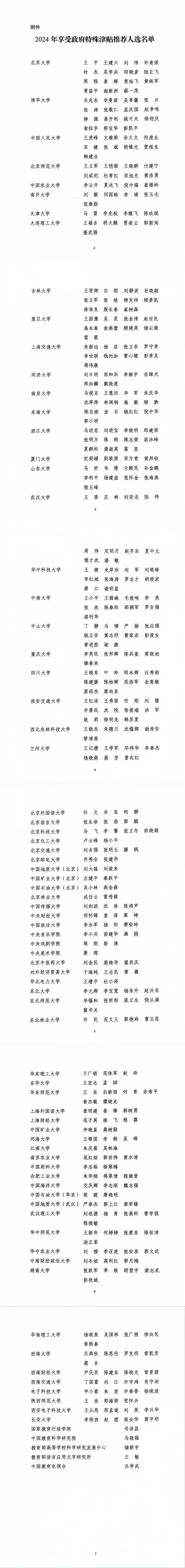 教育部2024年享受政府特殊津貼推薦人選名單