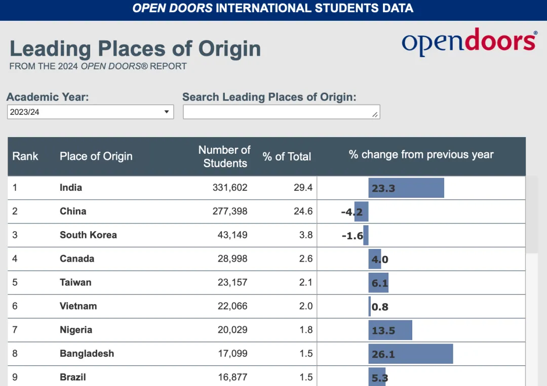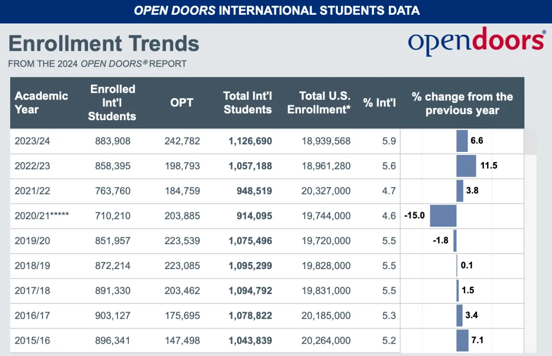 北京時間2024年11月18日晚,美國國際教育研究所(Institute of International Education, IIE)發布了《2024年度美國國際教育門戶報告》,也就是:Open Doors 2024 Report。