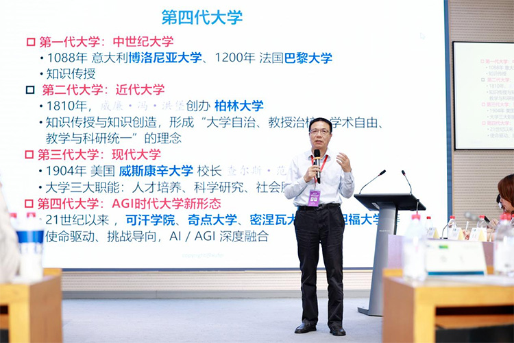 近日,在上海師范大學商學院舉辦的2025年上海地區商學院(管理學院)院長圓桌會暨上海地區MBA中心主任交流會上,文科資深教授徐飛發表了題為“AGI時代商科教育的非編碼能力”的演講。在演講中,徐飛教授提出,進入21世紀,隨著AGI技術的迅猛發展,大學教育迎來了新的變革契機,第四代大學呼之欲出。