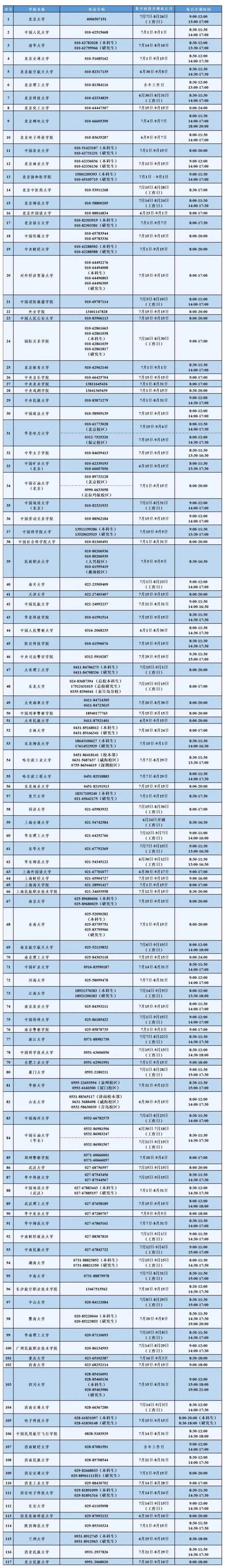 各省(自治區、直轄市)和中央部屬高校同步開通熱線電話,電話號碼與開通時間見文后一覽表。