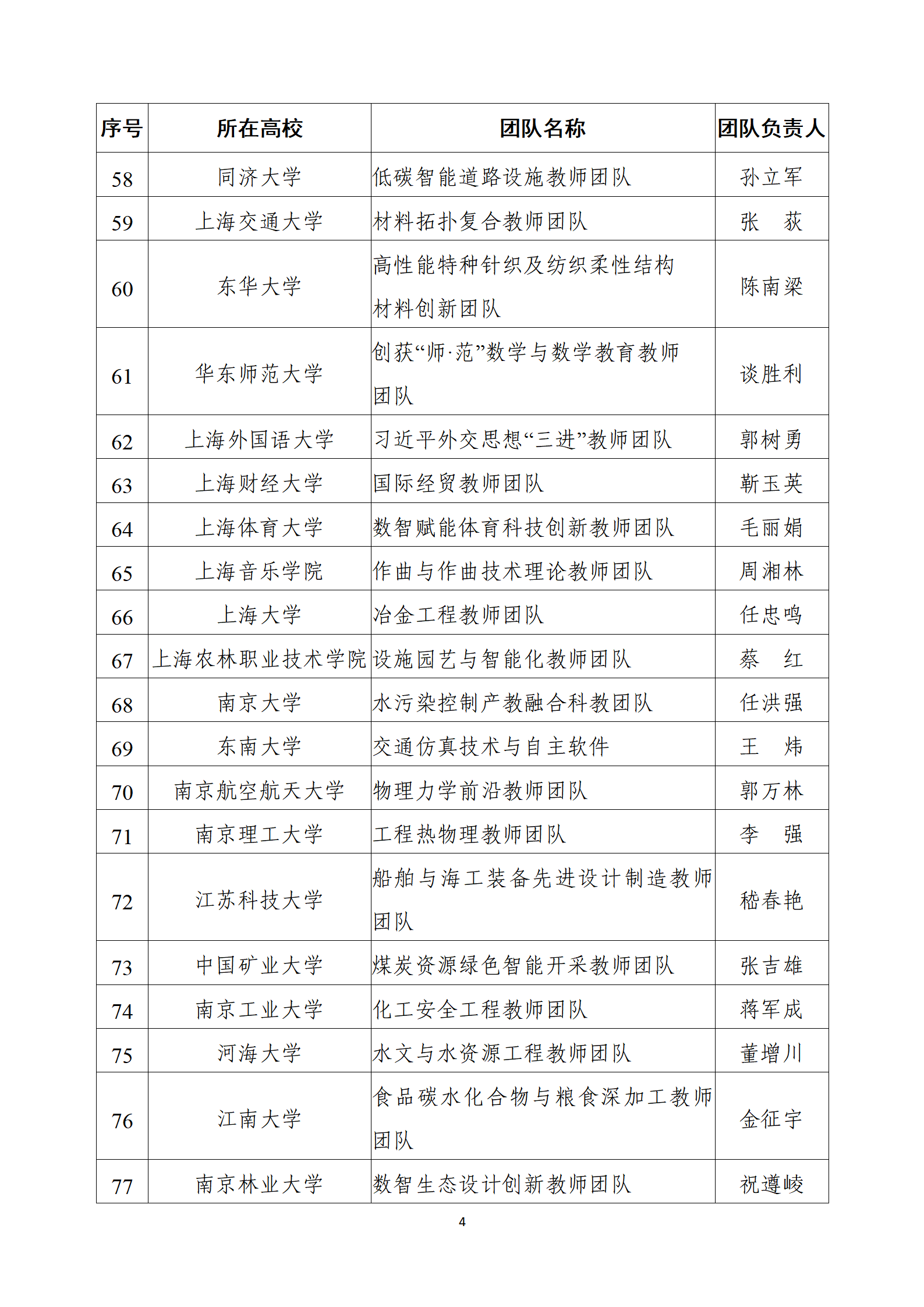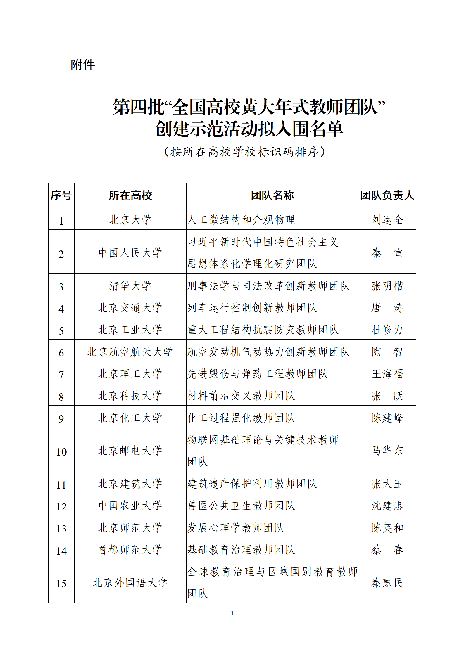 附件:第四批“全國高校黃大年式教師團隊”創建示范活動擬入圍名單