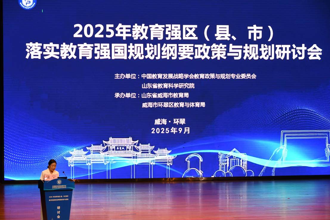 9月12日-13日,為深入學習貫徹習近平總書記關于教育強國的重要論述,全面貫徹全國教育大會精神,認真落實《教育強國建設規劃綱要(2024-2035年)》,中國教育發展戰略學會教育政策與規劃專業委員會、山東省教育科學研究院、山東省威海市教育局、威海市環翠區教育與體育局共同舉辦2025年教育強區(縣、市)落實教育強國規劃綱要政策與規劃研討會,來自全國17個省近百個區(縣、市)的行政、科研、基層一線專家學者及代表300多人參加了現場會議。會議由中國教育發展戰略學會常務副會長兼教育政策與規劃專業委員會理事長康寧和山東省威海市教育教學研究院院長董紹才主持。