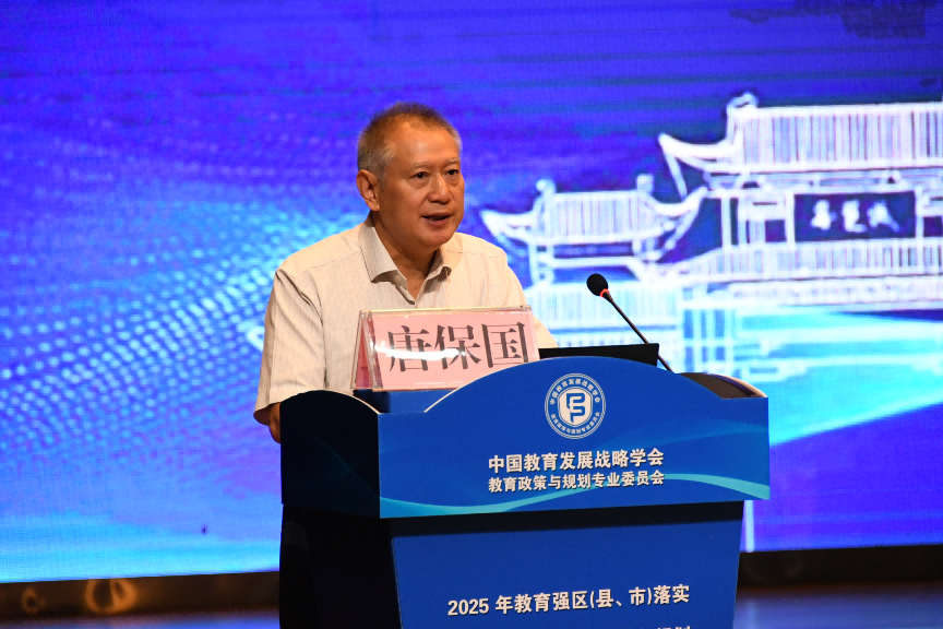在主旨報告環節,教育部督導局二級巡視員唐保國做《以基礎教育督導評估之“責”擔教育強國建設之“任”》專題主旨報告,他指出,加快建設教育強國,推動學前普及普惠、義務教育優質均衡發展和城鄉一體化、高中階段教育優質特色發展,必須繼續充分發揮督導評估的引導、督促和推動作用,以高質量督導評估監測工作引領和推動義務教育高質量發展。截至目前,全國已有28個省份的454個縣(市、區)被認定為學前教育普及普惠縣,有25個省份的246個縣(市、區)被國家認定為義務教育優質均衡發展縣。結合實踐成效與下一步方向,他提出了五點建議:一是要切實發揮教育督導“指揮棒”作用,引領基礎教育高質量發展;二是要以學前“雙普”督導評估為支點,推動學前教育優質發展;三是要以優質均衡督導評估為抓手,推進義務教育高位發展;四是以高中學生素質素養監測為切入點,夯實教育強國建設力量;五是緊扣綱要落實,推動基礎教育督導評估再上新臺階。他表示,教育督導工作將始終堅守以評促建、以評促改的機制,聚焦三大核心任務,在三大領域持續發力,以高質量督導評估監測工作引領和推動義務教育高質量發展。