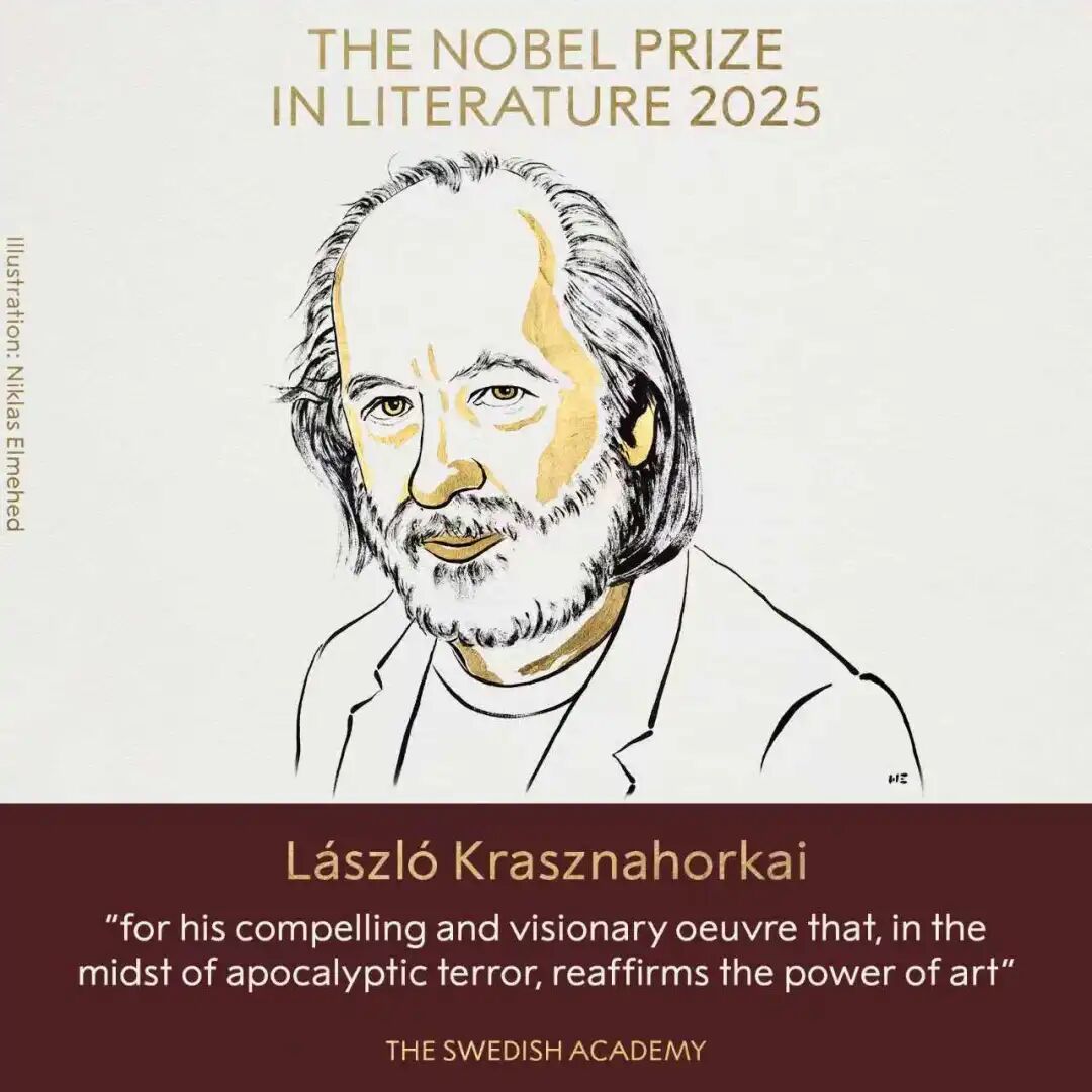 2025年諾貝爾文學獎授予匈牙利作家拉斯洛·卡撒茲納霍凱,以表彰其“在末日恐怖的背景下,以引人入勝且富有遠見的創作重申了藝術的力量”。獲獎獎金為1100萬瑞典克朗。