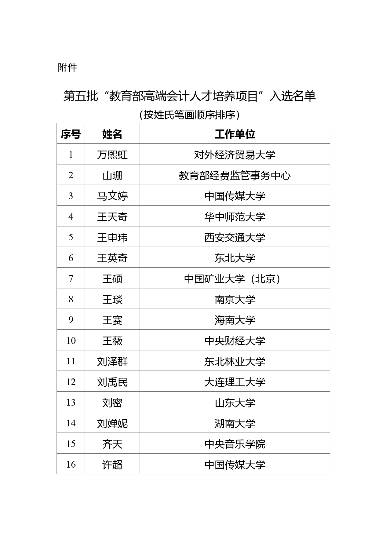 教育部公示第五批高端會計人才培養項目選拔結果