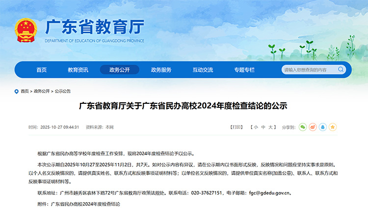 2所優秀,6所基本合格!廣東公示民辦高校2024年檢查結果