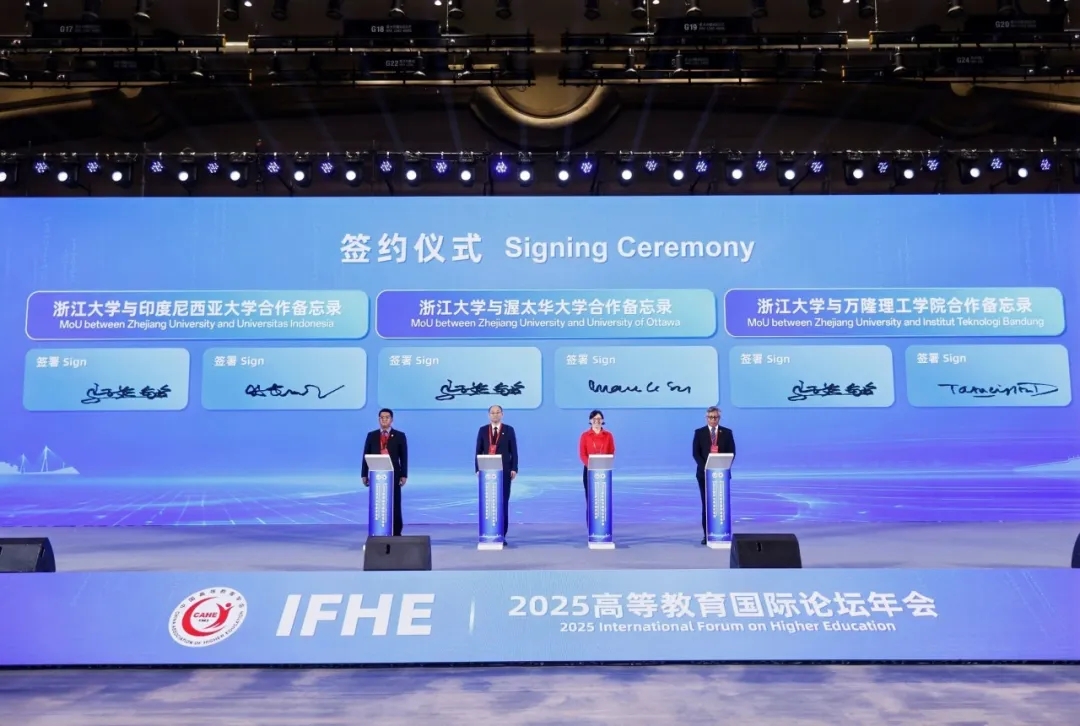 50余所中外高校在會上達成合作意向,浙江大學作為高校代表,與渥太華大學、印度尼西亞大學、萬隆理工學院等高校簽署合作備忘錄。