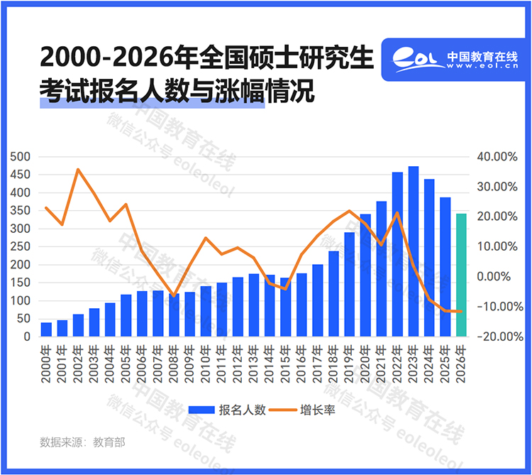 考研熱出現關鍵轉折!教育部公布2026考研報名人數繼續下降45萬, 僅有343萬人。這是自2024年起連續第三年下降了,此前分別下降36萬,50萬,三年跌去130余萬人。