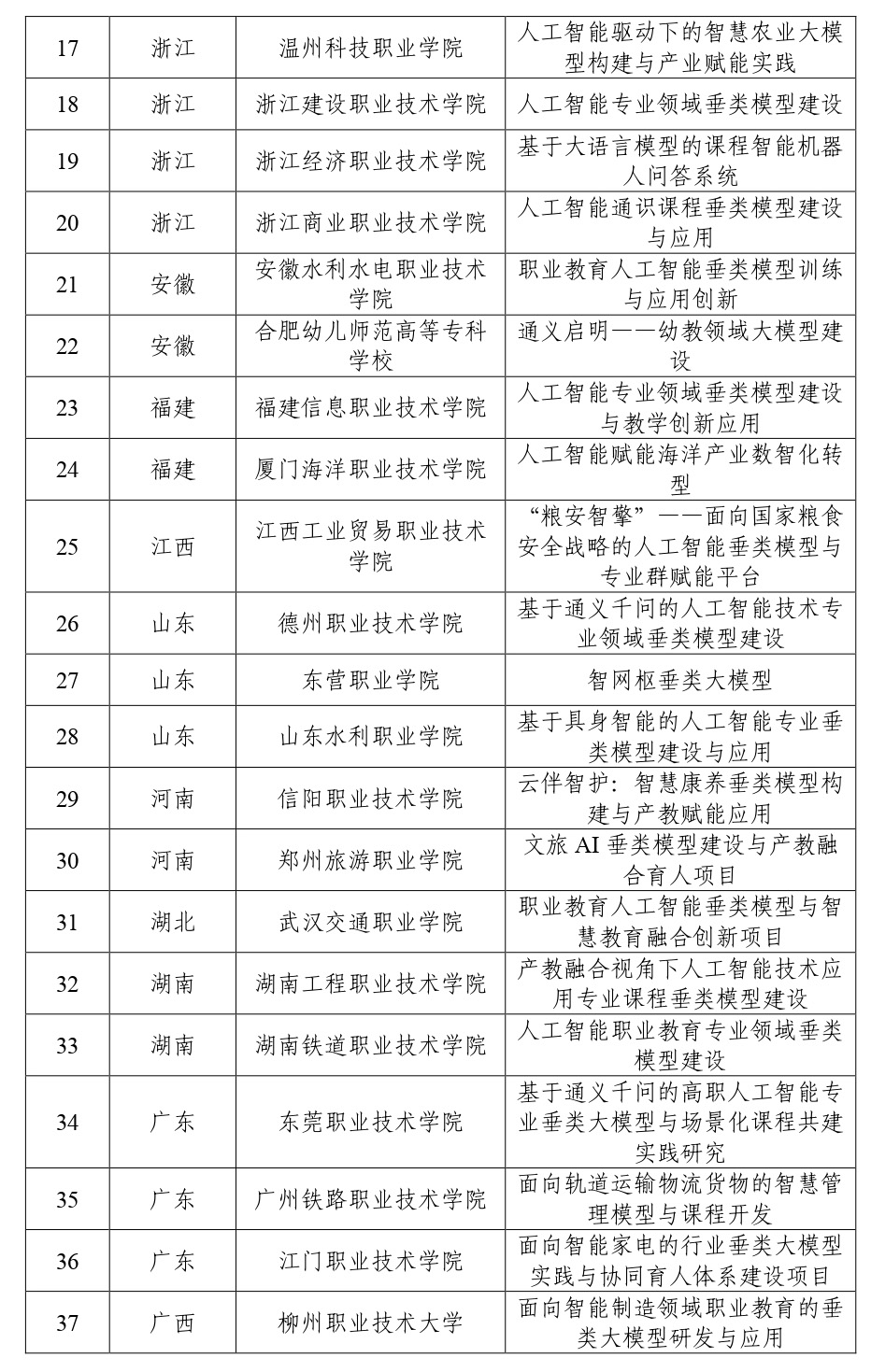 第三批職業教育專業領域垂類模型建設項目入選名單公布
