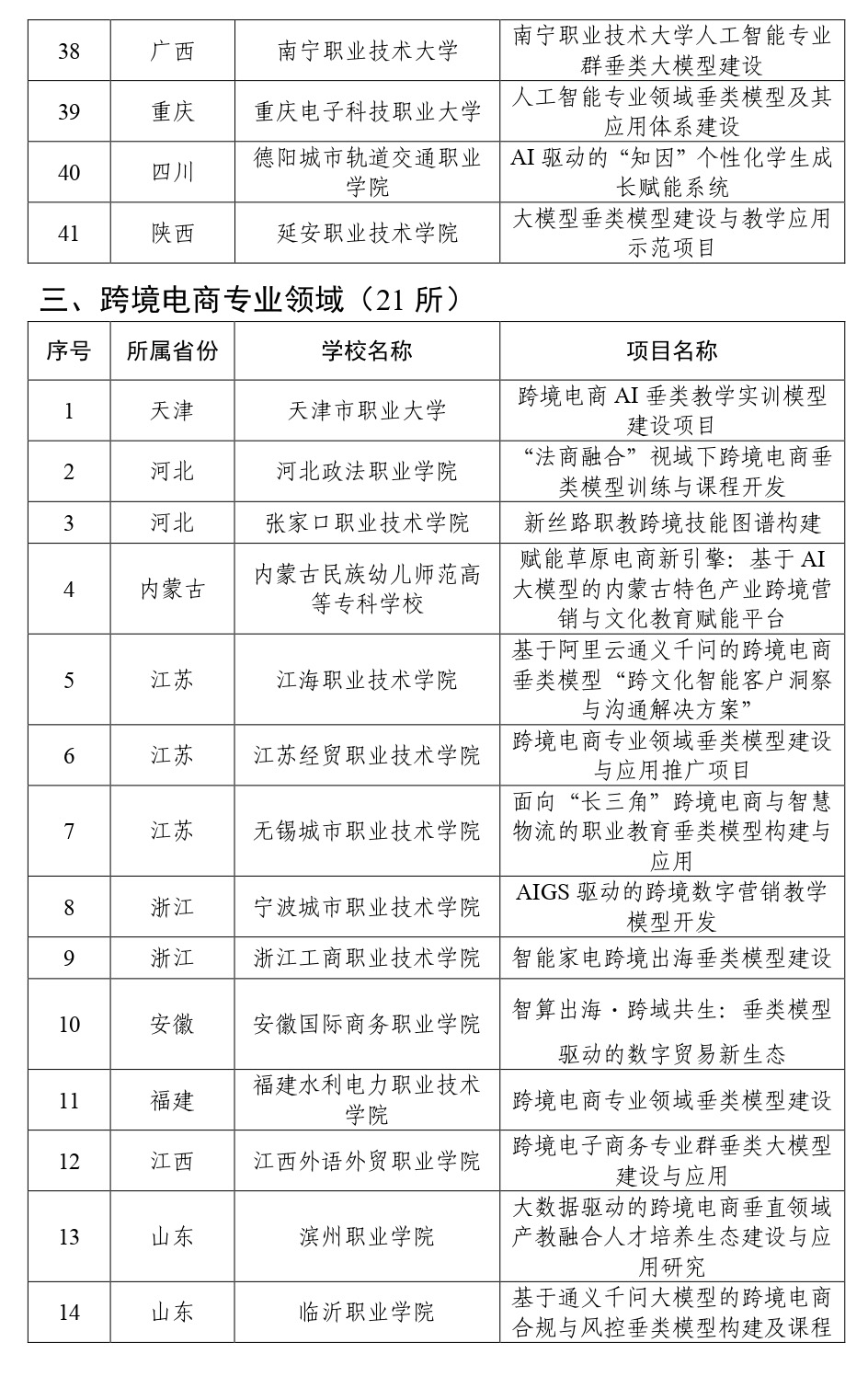 12月17日,教育部職業教育發展中心公布職業教育專業領域垂類模型建設項目(第三批)入選名單。此次共遴選出77所院校參與相關項目建設(其中,云計算專業領域15所、人工智能專業領域41所,跨境電商專業領域21所)。