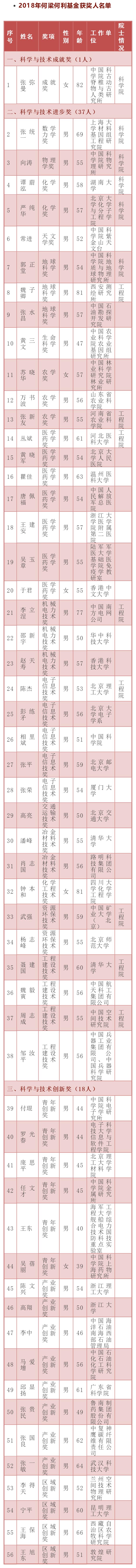 與此同時,37位在科學技術領域做出重大發明、發現和科技成果的優秀科技工作者,榮獲“何梁何利基金科學與技術進步獎”;18位具有高水平科技成就,通過技術創新和管理創新,創造重大經濟效益和社會效益的優秀科技工作者榮獲“何梁何利基金科學與技術創新獎”。